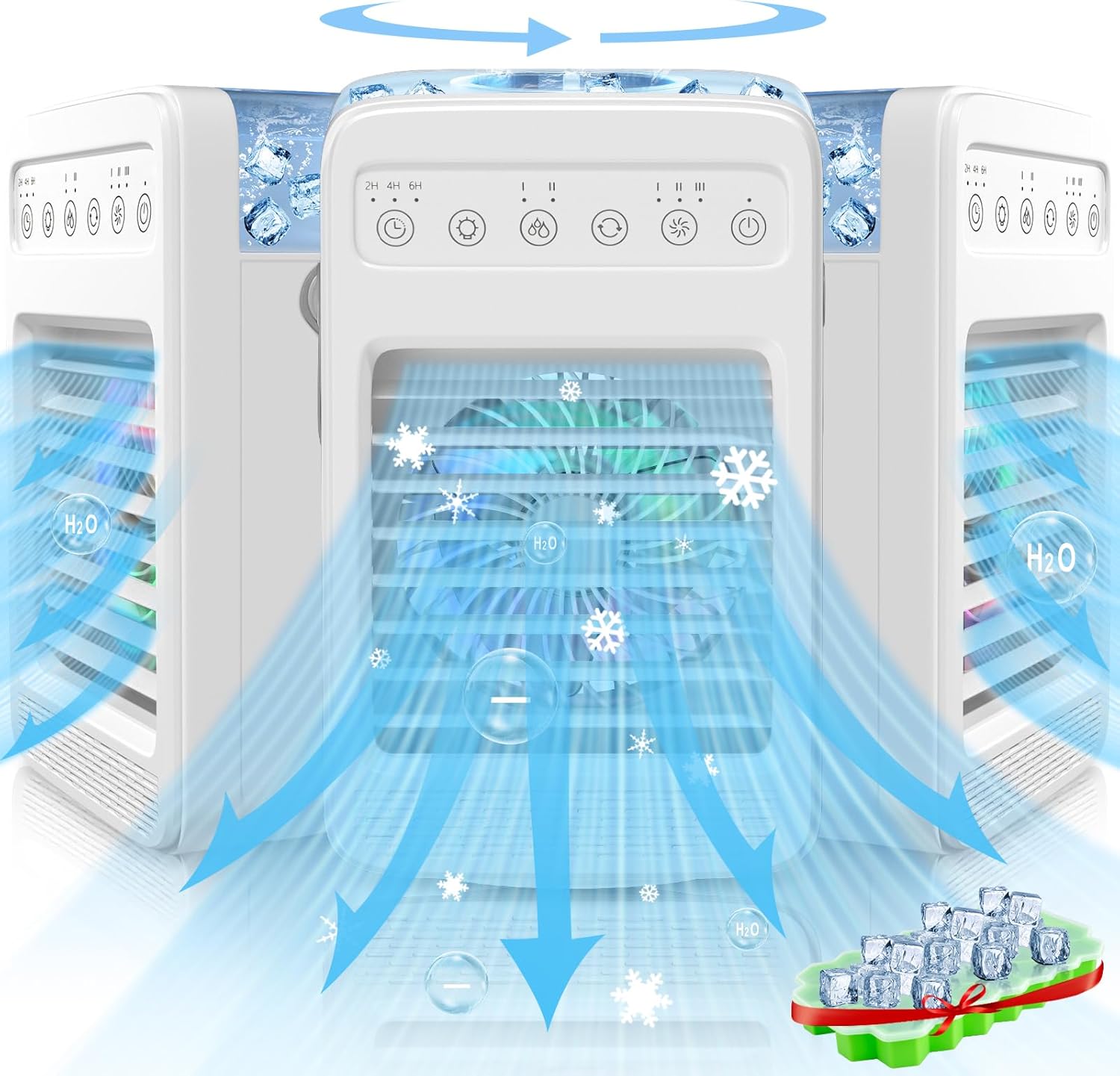 Portable Air Conditioners, Evaporative Air Cooler with Water Tank & Ice Cube Tray,180° Oscillating Small Mini AC with Timer,4 Speeds 2 Cool Mist,4 In 1 Personal Air Conditioner for Room Kitchen Office
