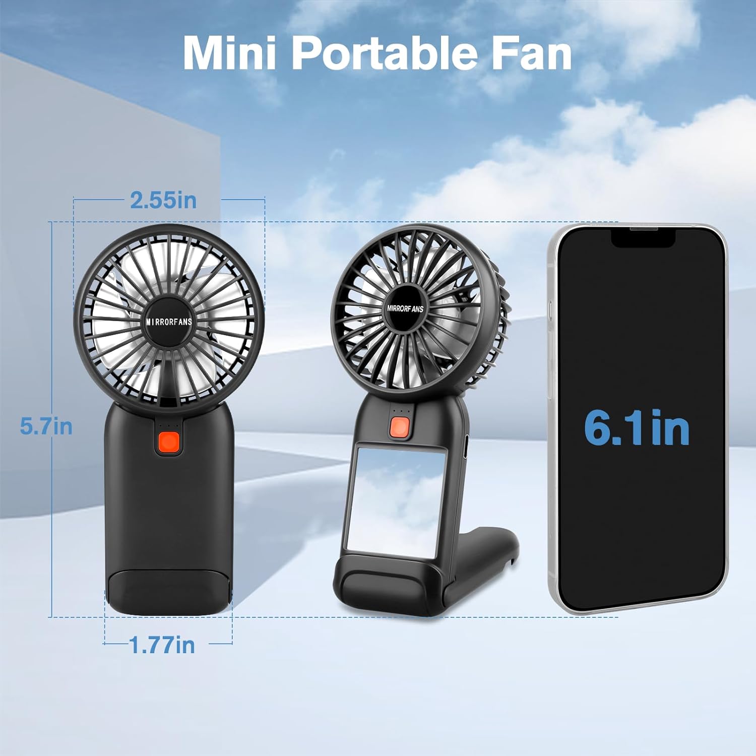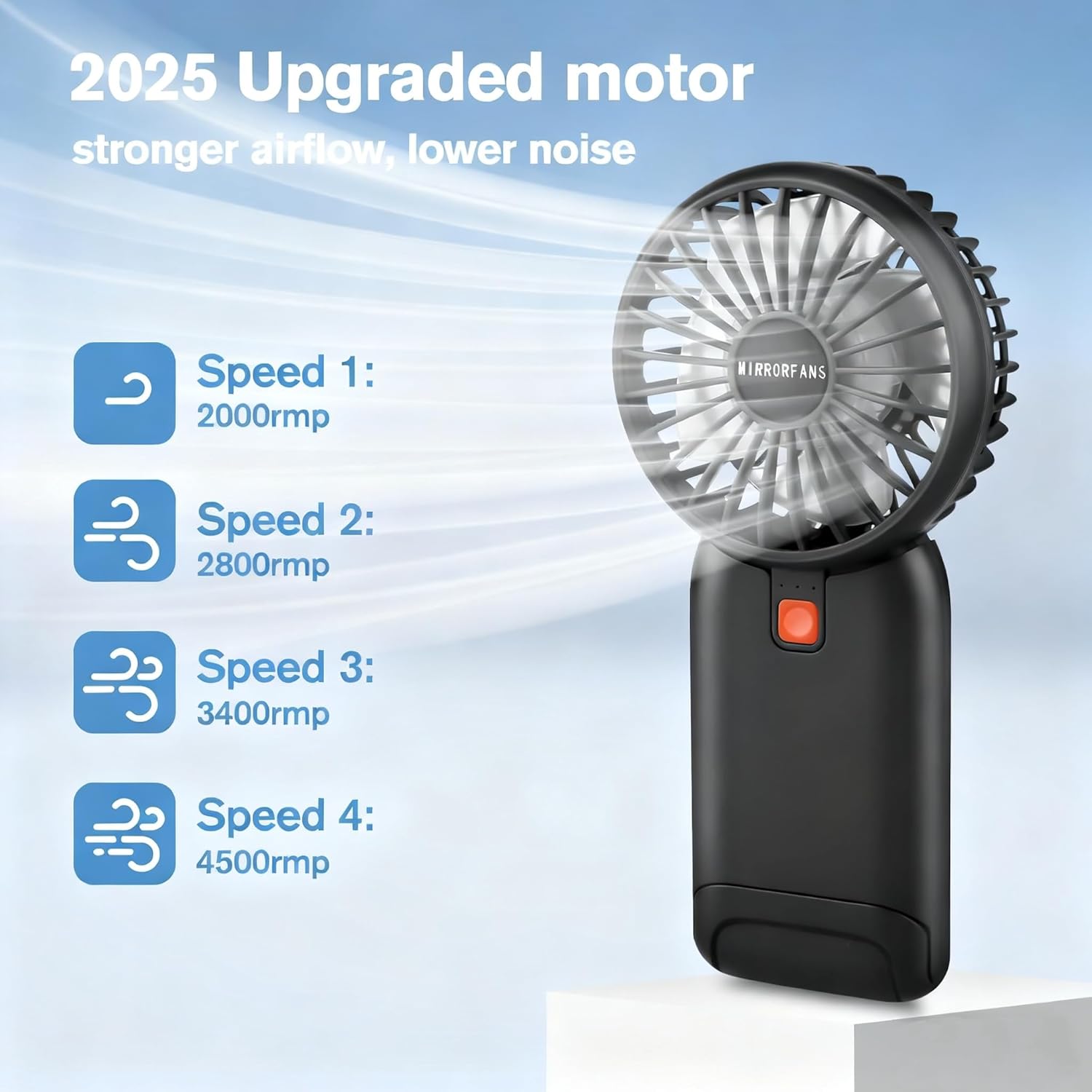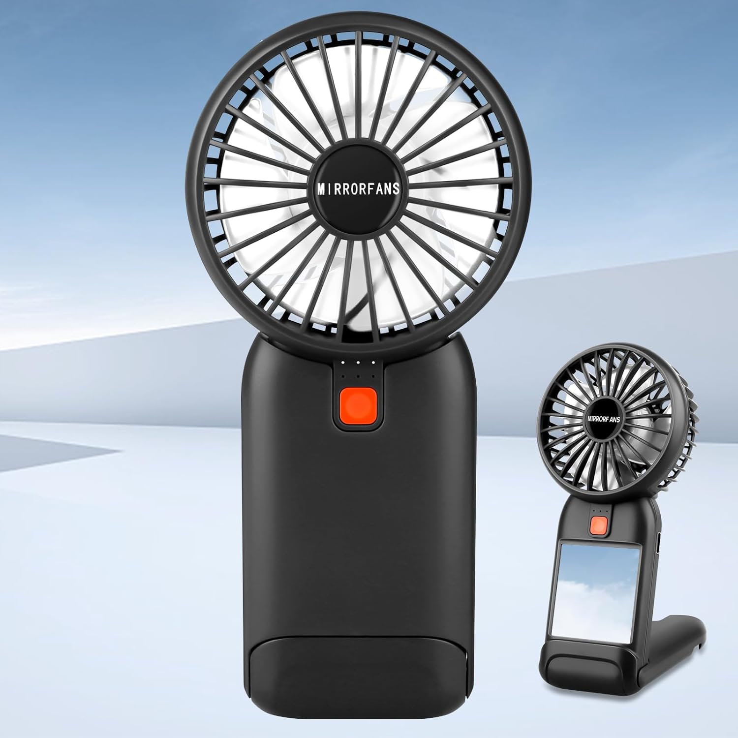 Portable Handheld Fan, 2026 Upgrade Mini Fan with Mirror, USB Rechargeable Desk Fan, 4 Speed Adjustable Battery Powered, Portable Mini Fan for Girls Kids Women Men Indoor Outdoor Travel Makeup