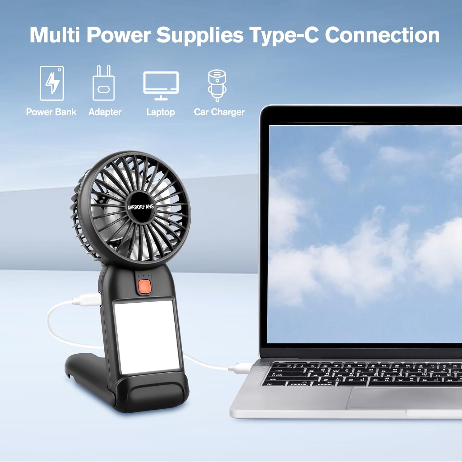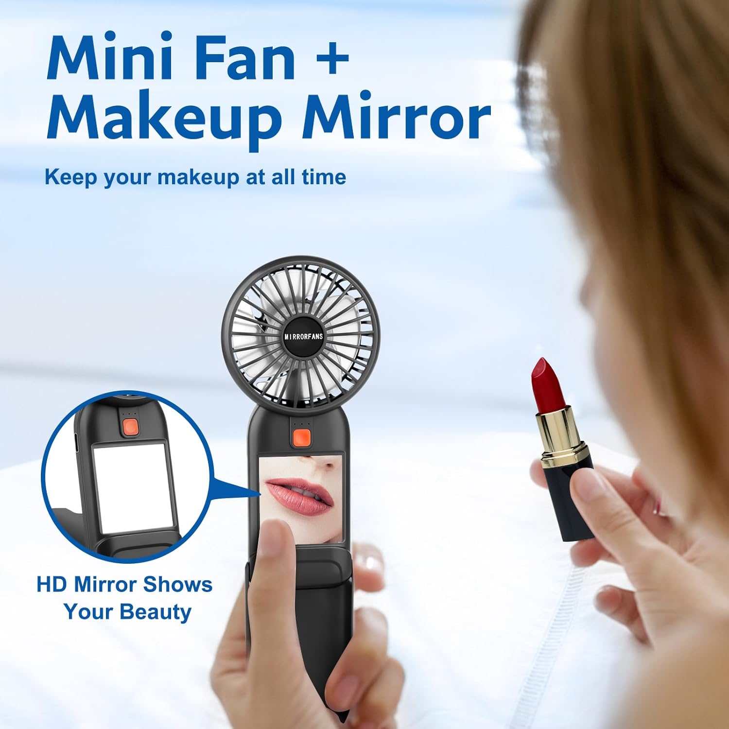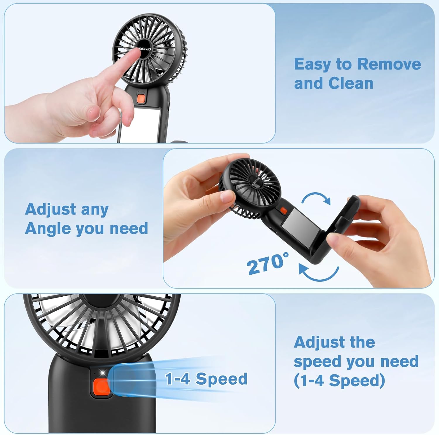 Portable Handheld Fan, 2026 Upgrade Mini Fan with Mirror, USB Rechargeable Desk Fan, 4 Speed Adjustable Battery Powered, Portable Mini Fan for Girls Kids Women Men Indoor Outdoor Travel Makeup