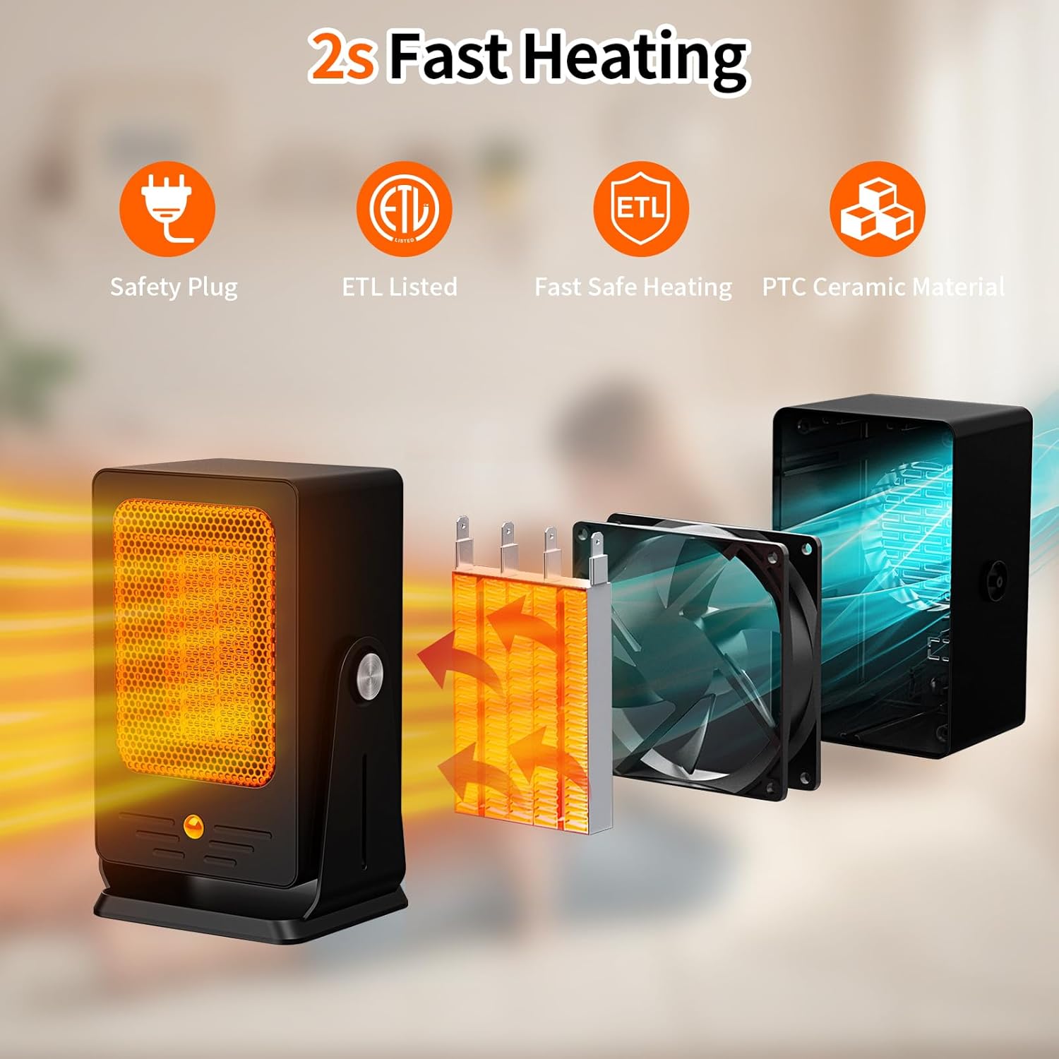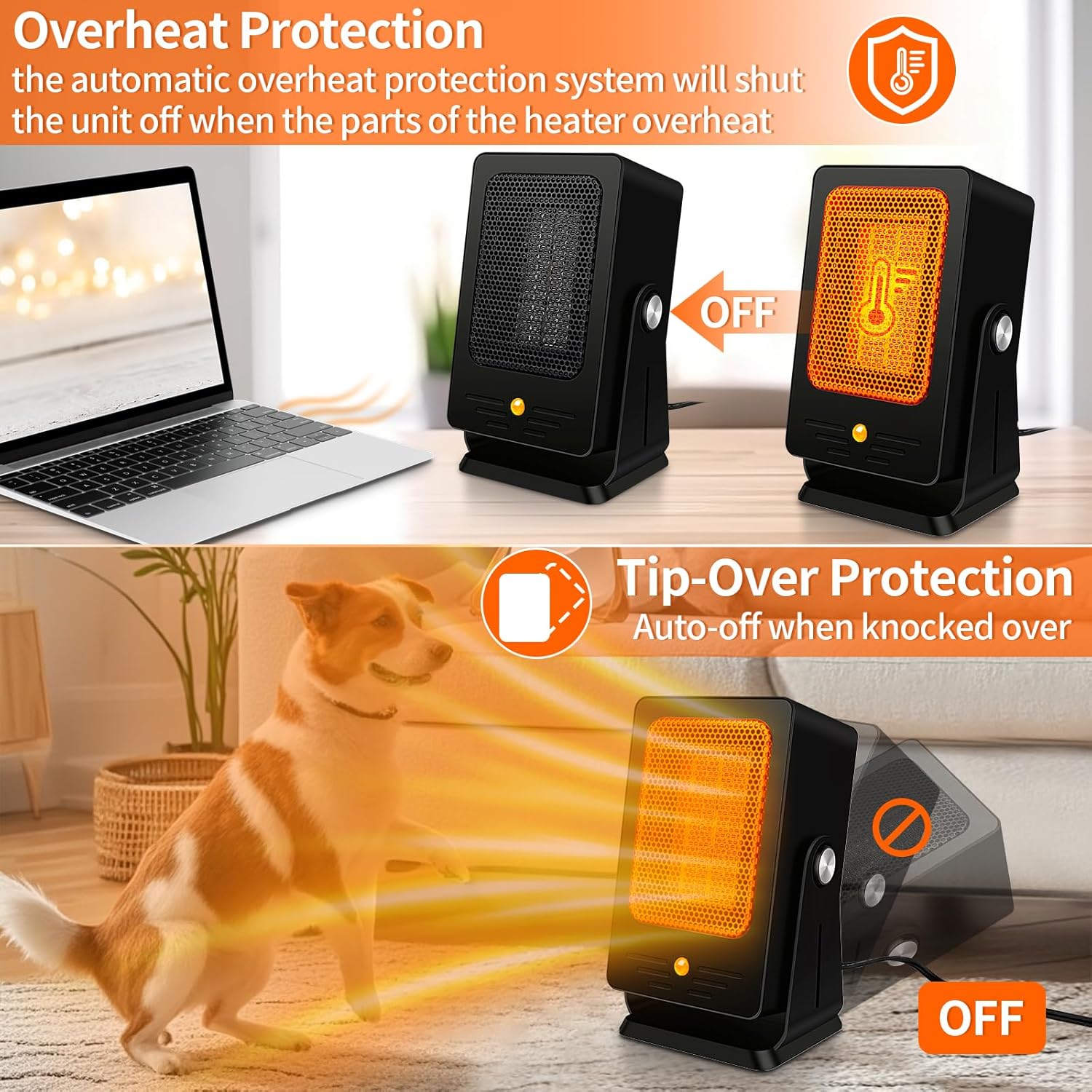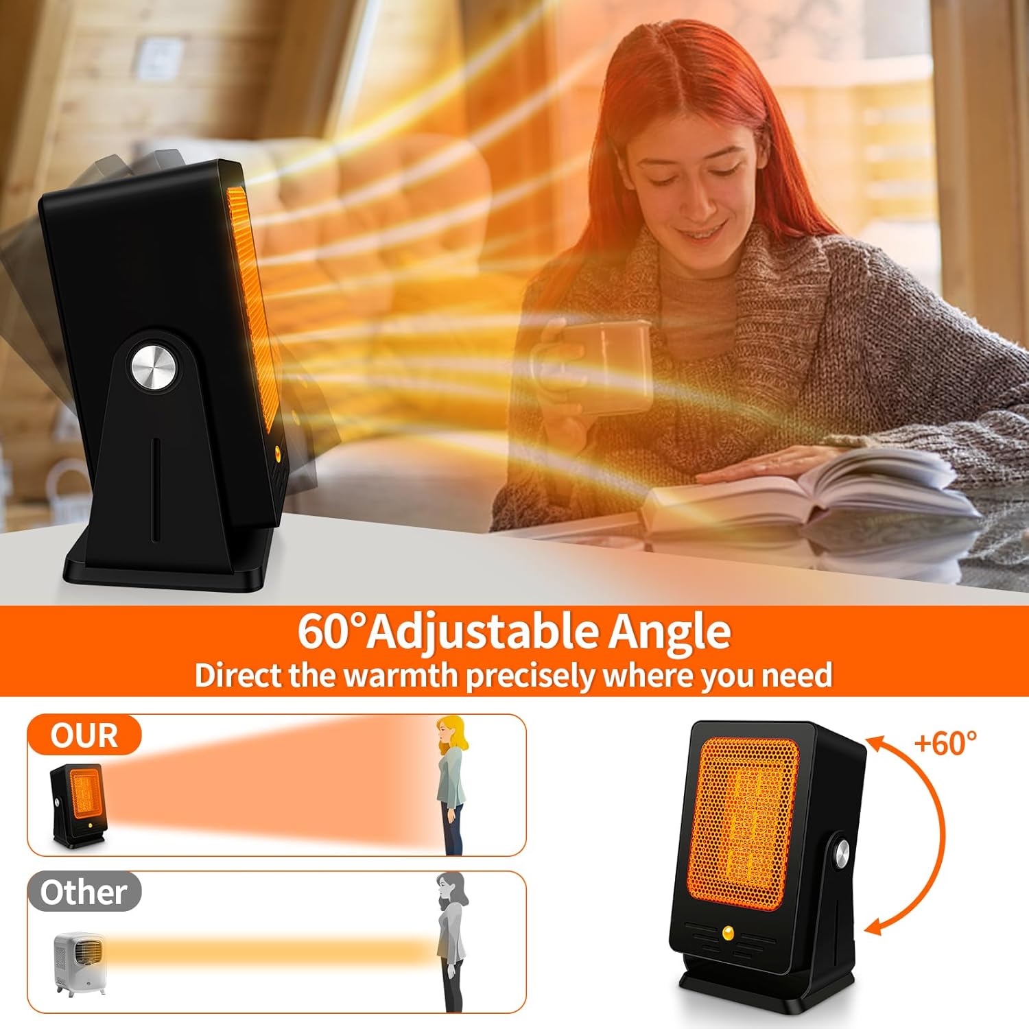 Verminget Space Heaters for Indoor Use,Desktop Small PTC Heater with 2s Fast Heating,Tip-Over&Overheat Protection,60°Adjustable Angle Portable Personal Electric Heater for Office,Bedroom,Garage,Dorm